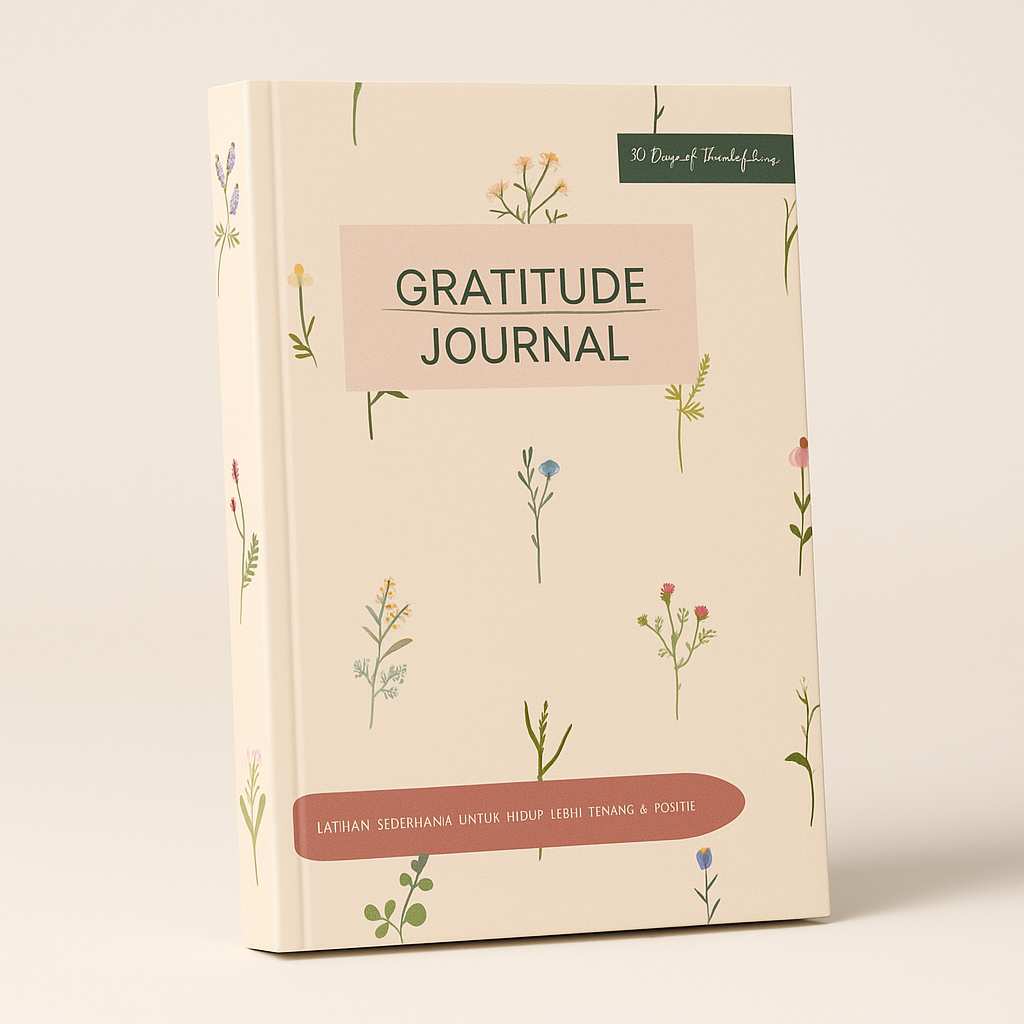 Gratitude Journal Premium hadir sebagai media refleksi harian yang membantu pengguna menyadari hal baik di sekitar mereka. Formatnya dirancang ringkas sehingga nyaman digunakan siapa pun yang ingin membangun kebiasaan bersyukur. Setiap halaman memiliki ruang terstruktur untuk mencatat momen positif, afirmasi, serta target harian yang menjaga fokus tetap pada perkembangan diri.